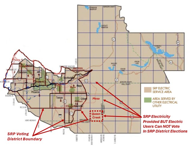 The result is that more than 250,000 Maricopa and Pinal County residents have no say in how SRP spends its earnings or sets rates for us customers. This wide swath of Maricopa citizens cannot vote in SRP District elections, and that is just patently unfair!
